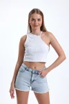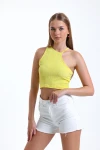 Asimetrik Omuz Detaylı Bisiklet Yaka Sıfır Kol Crop Bluz IHR-23Y-IZ42-U