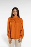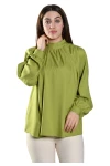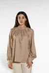 Bol Kalıp Saten Görünümlü Uzun Kollu Boğazlı Bluz SBD-DIOR-302