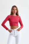 Omzu Kesik Detaylı Uzun Kollu Bisiklet Yaka Crop Bluz UNIT-U-16