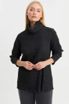 • Balıkçı yaka boğazlı tasarımı, soğuk havalara karşı sizi korurken, fitilli dokusu modern bir hava katıyor.