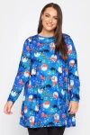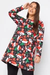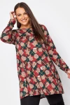 Büyük Beden Yılbaşı Temalı Bisiklet Yaka Uzun Kollu Uzun Kesim Bluz 321242
